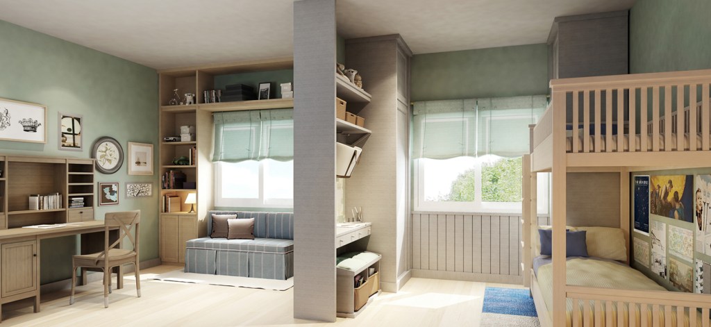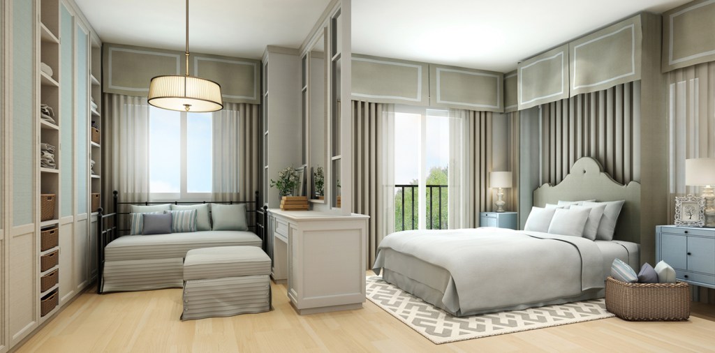 This design approach blends contemporary features to create a refreshed look highlighting warm, natural colours and appealing shades such as blue, grey, and green. Instead of opting for bright accents and vivid hues, this style focuses on wooden elements and subtle variations in patterns and textures. While the colour scheme prioritises natural tones, incorporating panel moulding into the home significantly enhances its elegance and luxury. This design showcases a beautiful and harmonious integration of traditional and modern elements.