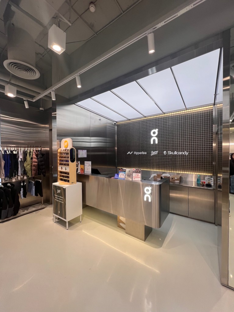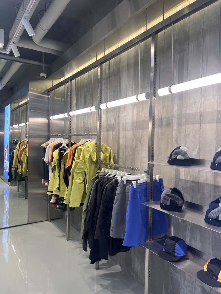 Stainless steel serves as the backbone of the store’s modern aesthetic, enhancing its futuristic appeal and aligning seamlessly with the brand’s innovative identity. The sleek surfaces reflect precision and performance—core values of On—while providing a luxurious, timeless backdrop for the products.